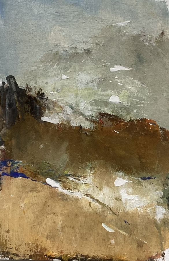 De ruige landschappen, het veranderlijke licht en de voelbare energie van het eiland beïnvloeden mijn composities en intuïtieve werkwijze. In mijn schilderijen zoek ik naar een balans tussen vrijheid en vorm, waardoor iedere laag een nieuw verhaal en een intens gevoelde beleving oproept.