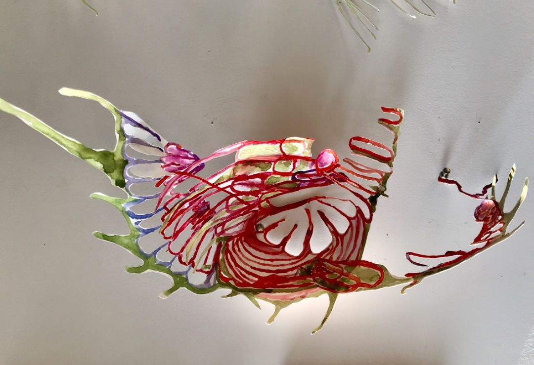 Mijn werk gaat over buiten, mijn ervaring in en met de natuur. Altijd observerend en uitermate geïnteresseerd in natuurlijke processen. Wilde vroeger ook bioloog worden. Nu zeg ik wel eens dat ik beiden ben: kunstenaar en bioloog. Ik teken veelvuldig onderdelen uit de natuur. Mijn organische beeldtaal vind dan ook daar zijn oorsprong. Ik teken eerst naar de waarneming van het blote oog en later heel erg ingezoomd zodat er bijna abstractie ontstaat. Daarnaast leg ik natuurlijk materiaal onder de microscoop en vermeng deze beelden en fantasievormen met elkaar tot een nieuwe wereld ontstaat. Ik heb een liefde voor papier, snijd mijn tekeningen uit tot sculpturen en installaties. Sinds 2023 zijn mijn papieren beelden ook in staal uitgevoerd. Zo ontstonden nieuwe mogelijkheden zoals de tuinbeelden.