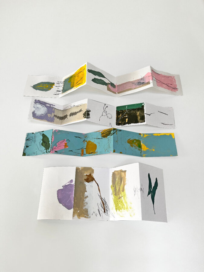 Mijn werken op papier laten flarden en gedachten zien, geïnspireerd op de natuur en dan met name planten. Ze zijn een realisatie van een moment, een persoonlijke blik op de omgeving.